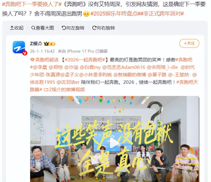 1月1日,《奔跑吧》官方发出一条消息,艾特了参与录制的许多明星,细心的网友发现,官方竟没有艾特周深,这样的情况出现,大家忍不住问:下一季是没有周深了吗?